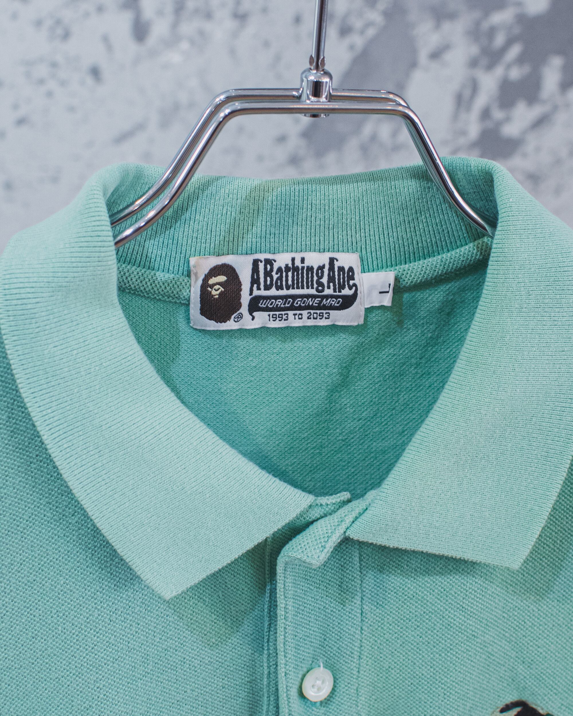 90年代に爆発的人気を誇り、現在でもストリートカルチャーやポップカルチャーに絶大な影響力をもつブランドA BATHING APEのポロシャツ。