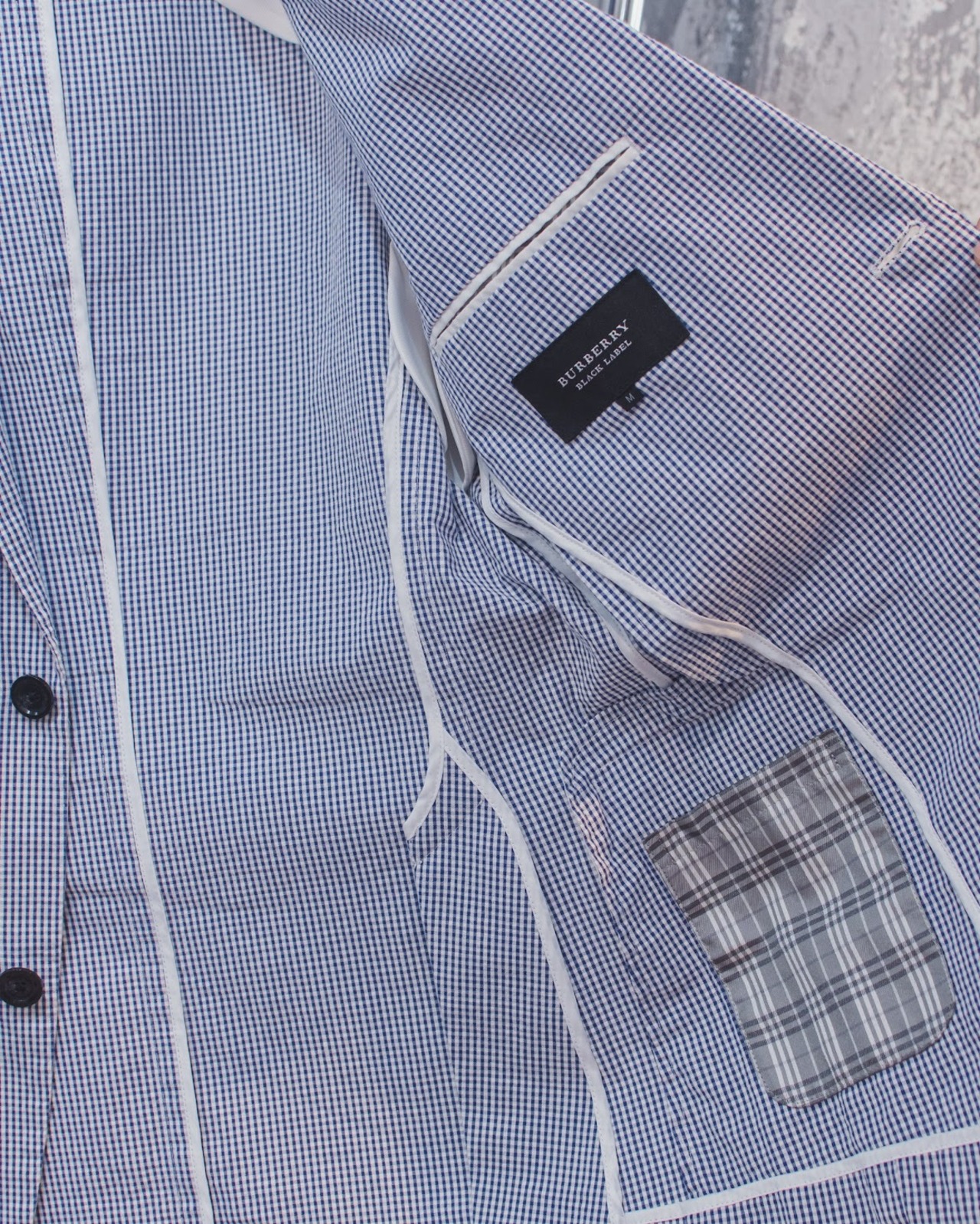 バーバリーブラックレーベルのシアサッカー生地のジャケットです。