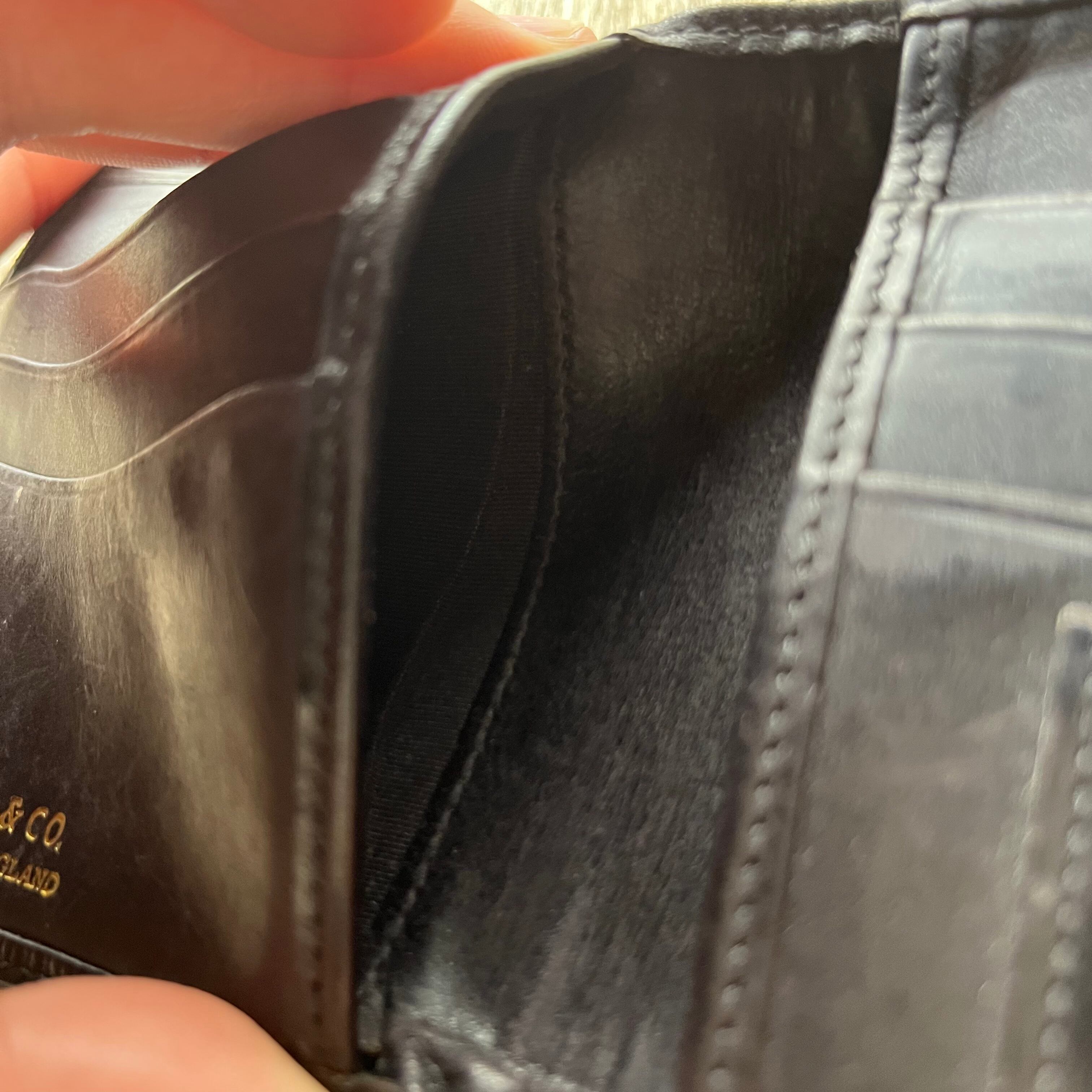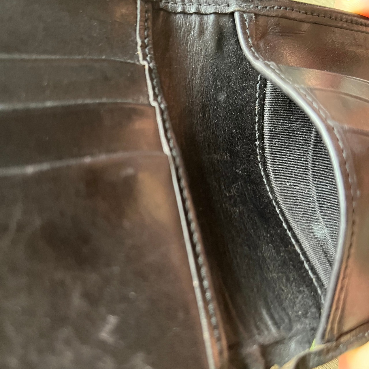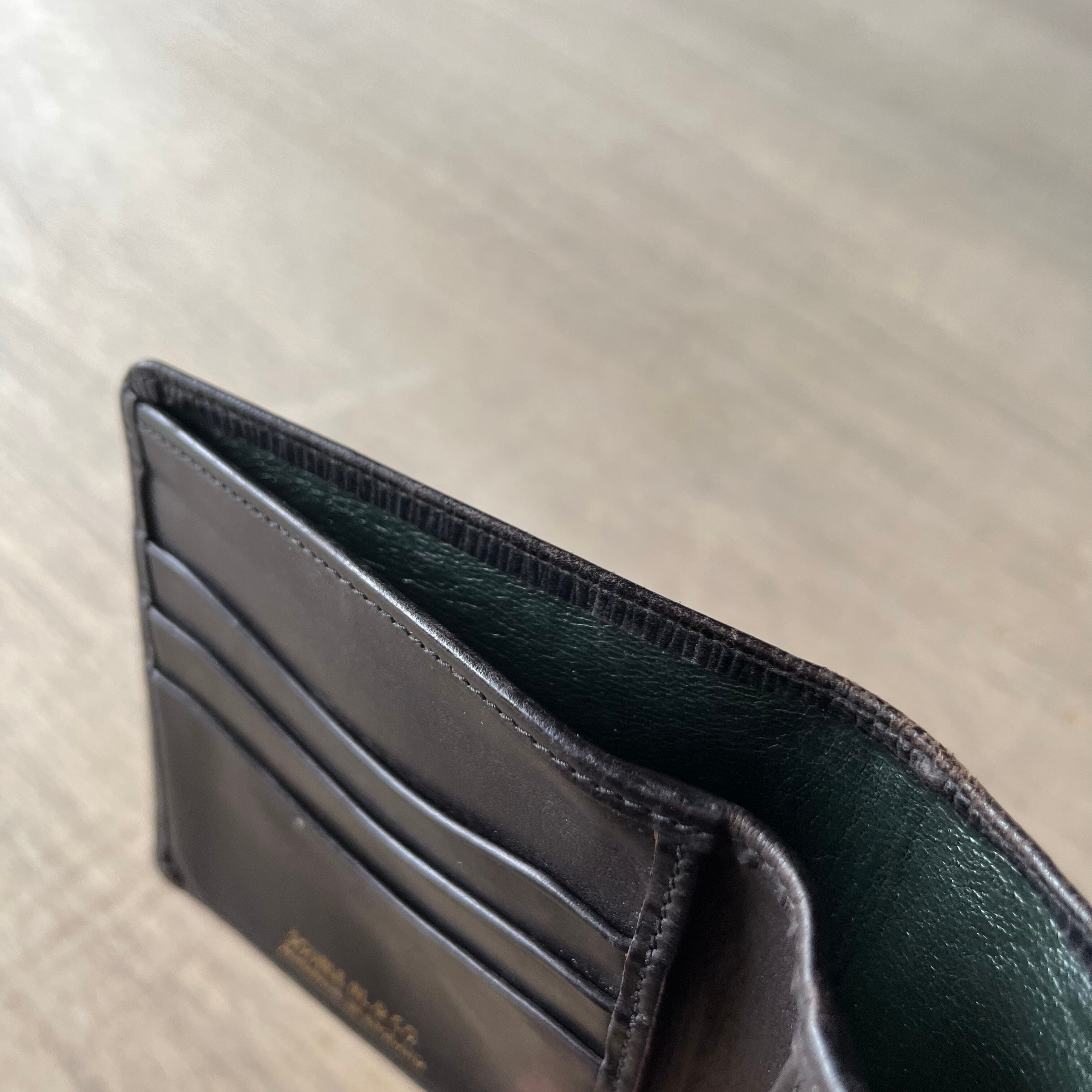 外側黒レザーに内側は深緑とオシャレな配色。