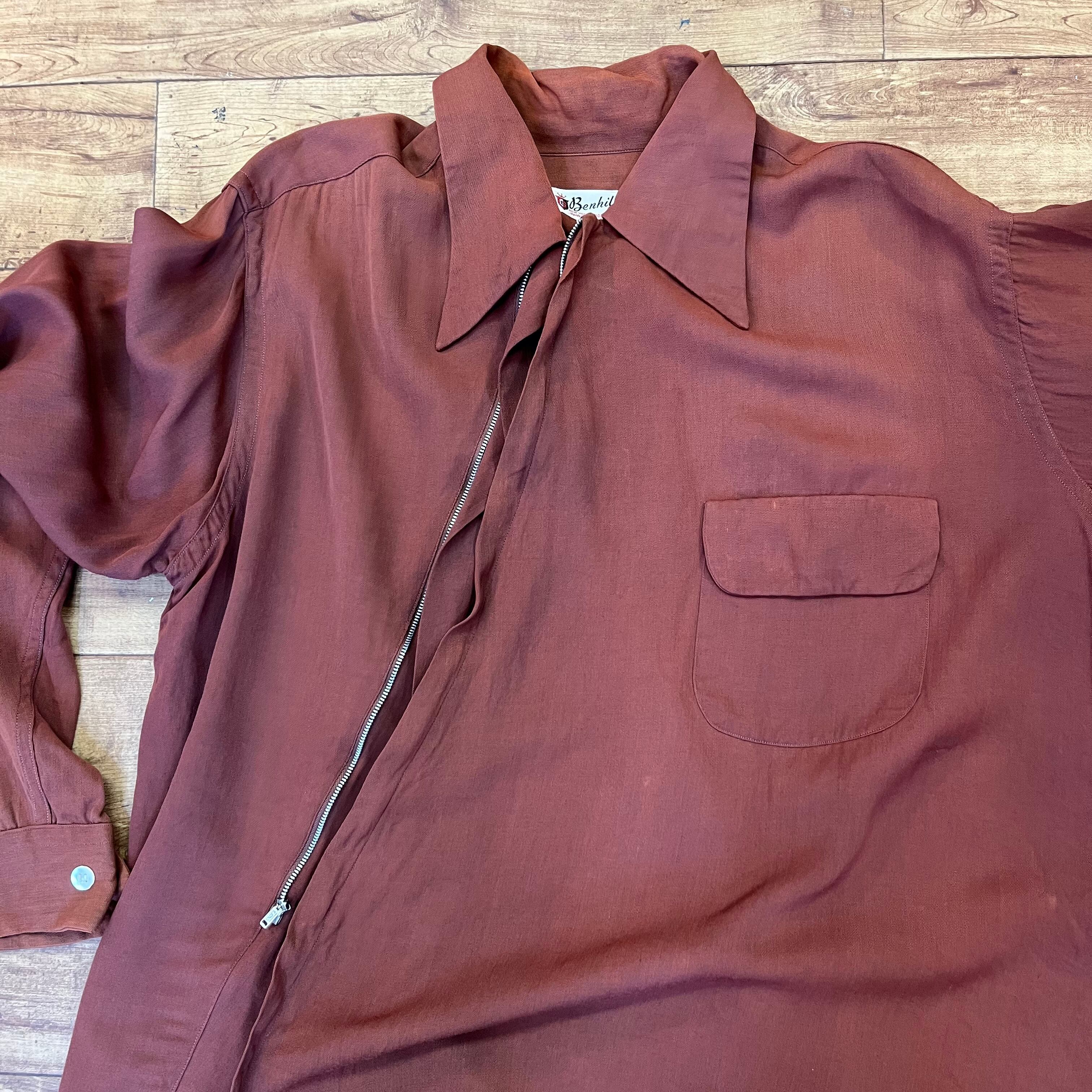 40’s vintage zip-up rayon shirt